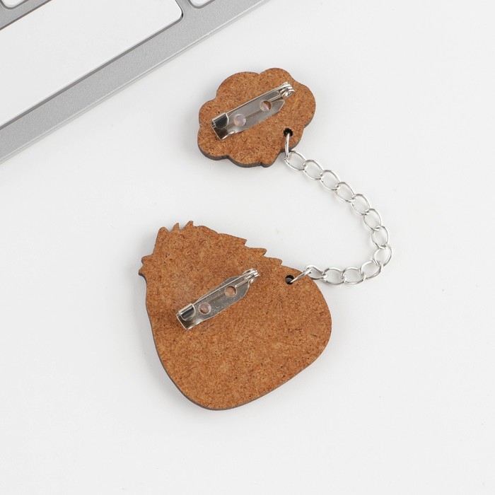 Значки скреплены небольшой цепочкой и отлично доаолняют друг друга. Если самостоятельно убрать цепочку, значки будут самостоятельными украшениями. Значок-брошь это отличный подарок на любое событие или яркое дополнение к подарку на 14 и 23 февраля, 8 марта, день рождения или Новый Год. Деревянный значок имеет достаточно широкое применение: его можно крепить на одежду, рюкзак, сумку, шапку, шарф.