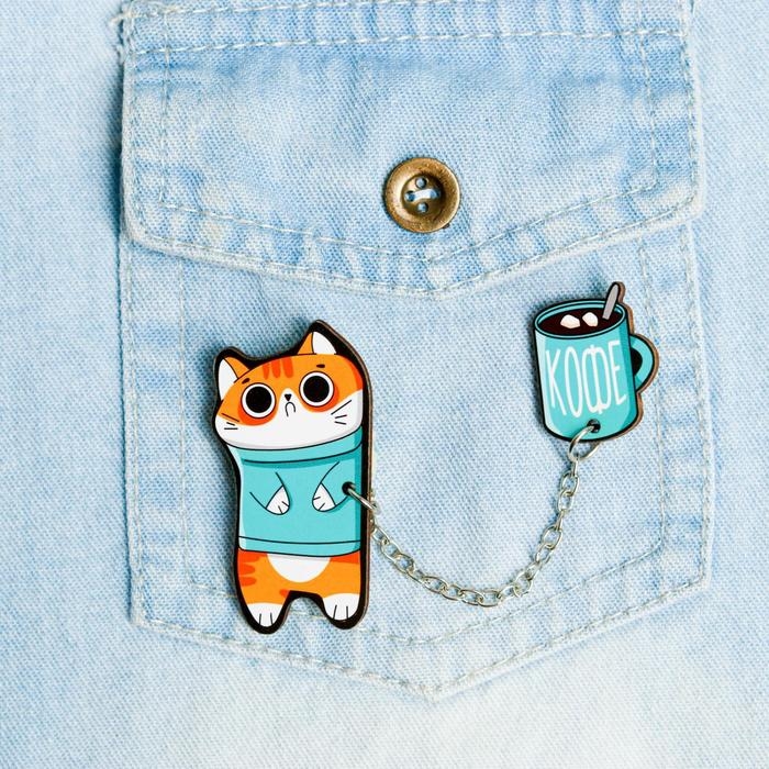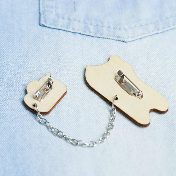Значки скреплены небольшой цепочкой и отлично доаолняют друг друга. Если самостоятельно убрать цепочку, значки будут самостоятельными украшениями. Значок-брошь это отличный подарок на любое событие или яркое дополнение к подарку на 14 и 23 февраля, 8 марта, день рождения или Новый Год. Деревянный значок имеет достаточно широкое применение: его можно крепить на одежду, рюкзак, сумку, шапку, шарф.