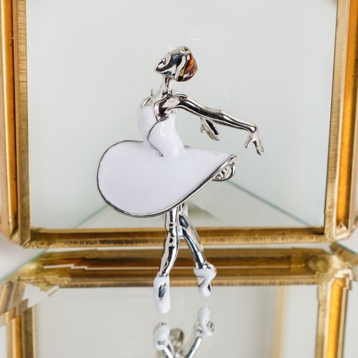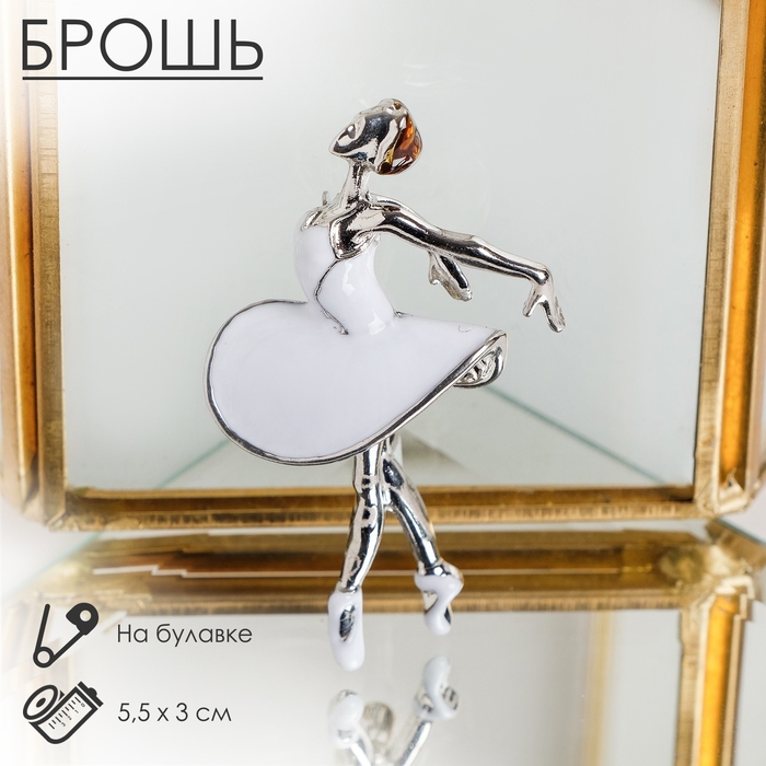 Брошь «Балерина» в пуантах, цвет белый в серебре