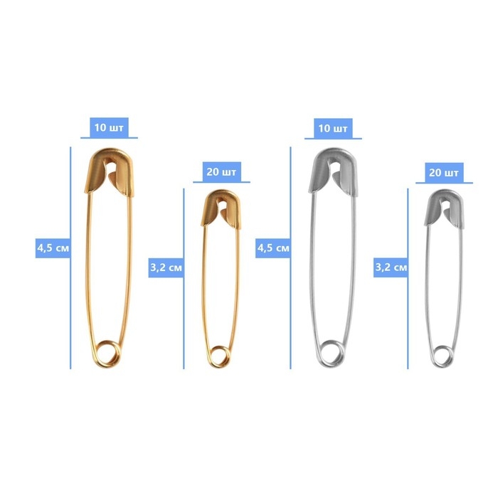 Набор булавок английских, 32 / 45 мм, 60 шт, цвет золотой/серебряный