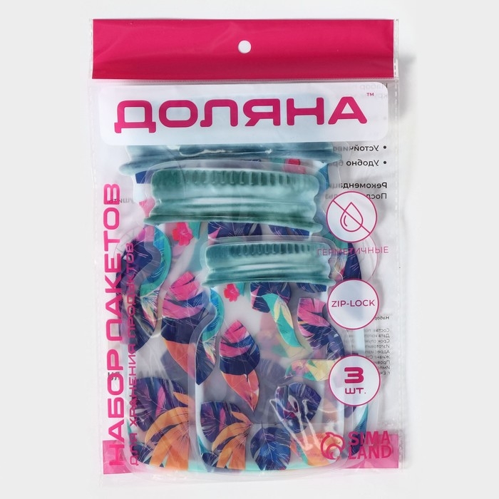 Набор пакетов для хранения сыпучих продуктов Доляна «Перья», застёжка zip-lock, 3 шт, 15×10 см, 20×13 см, 24,5×16,5