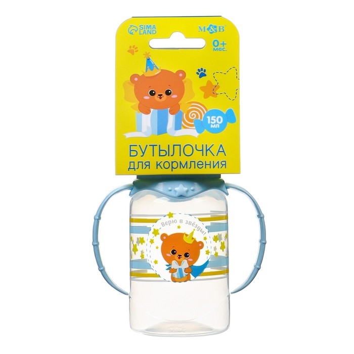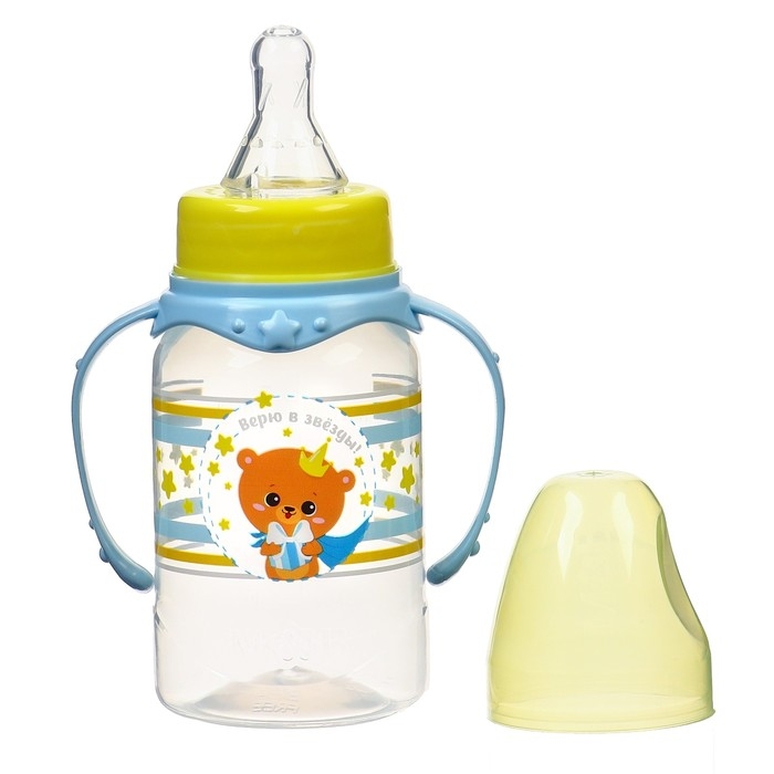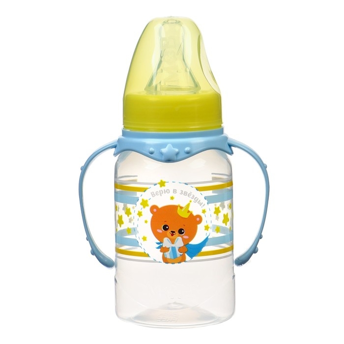 Бутылочка для кормления «Мишка принц», классическое горло, 150 мл., от 0 мес., цилиндр, с ручками