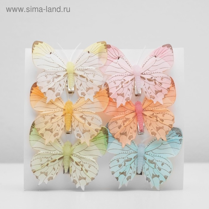 Бабочка для декора и флористики, на прищепке, пластиковая, микс, 1 шт., 7,5 х 5 х 1 см