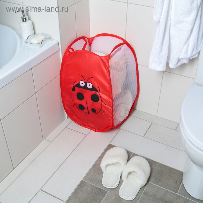 Корзина для игрушек Доляна «Божья коровка», складная, 32×32×52 см, цвет красный