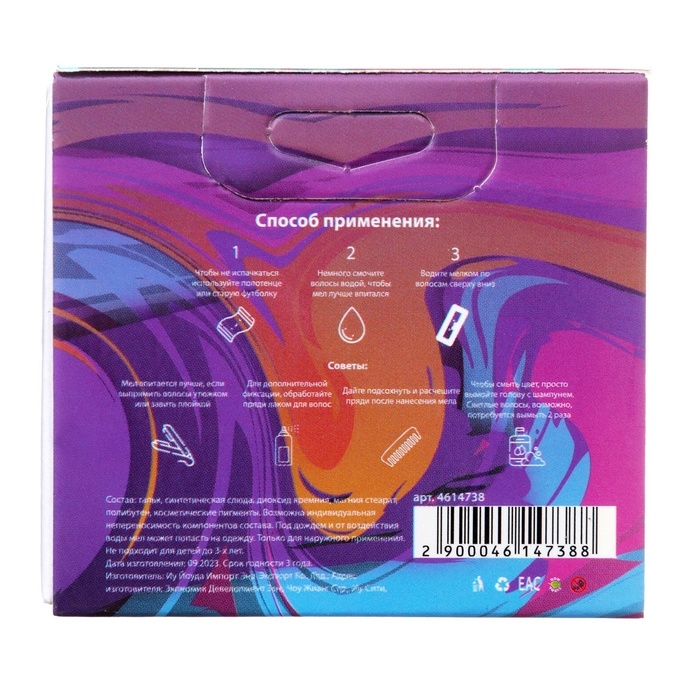 Внимание: под дождем и от воздействия воды мел может попасть на одежду.