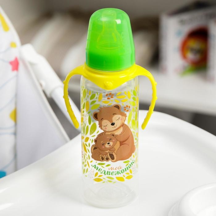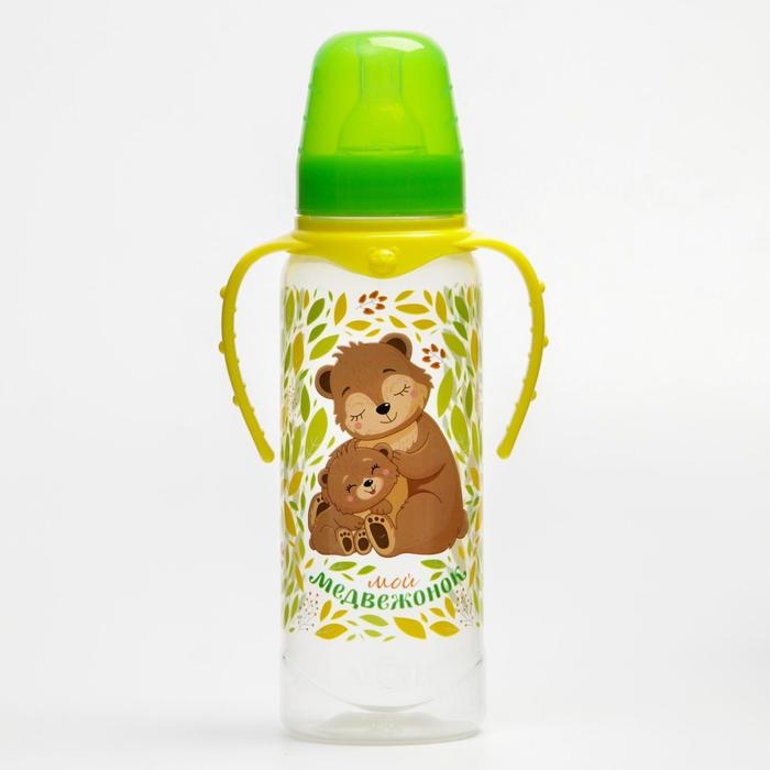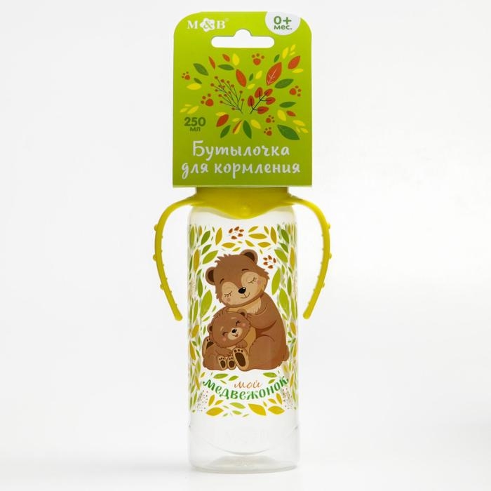 Бутылочка для кормления «Мишки: мамы и малыши», классическое горло, 250 мл., от 0 мес, цилиндр, с ручками