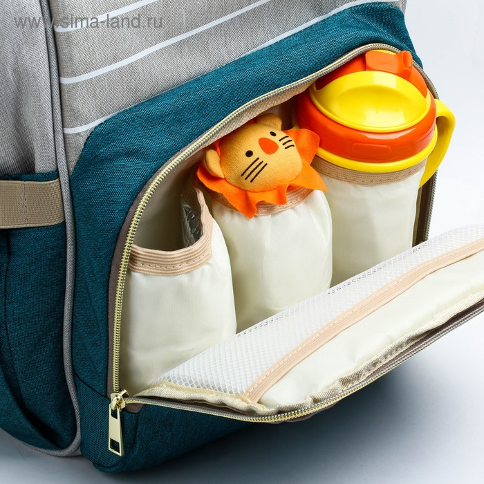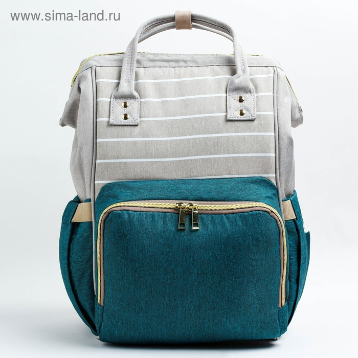 Сумка рюкзак для мамы и малыша с термокарманом, термосумка - портфель, цвет серый/зеленый