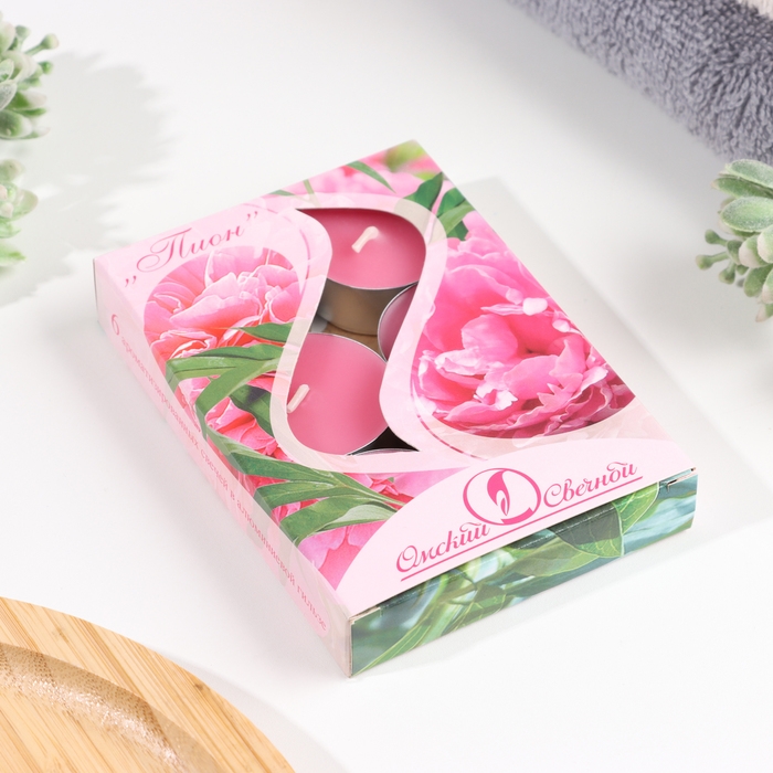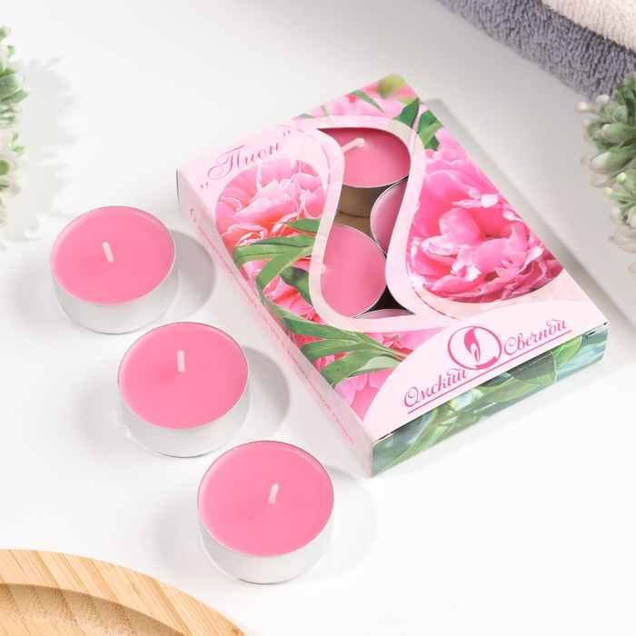 Набор чайных свечей ароматических "Пион", 3,8х1,6 см, 3,5 ч, 12 г, 6 штук