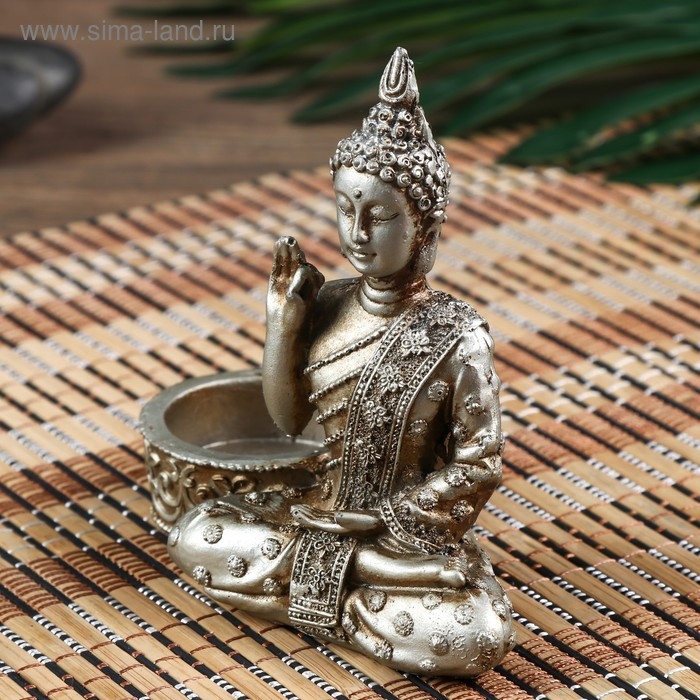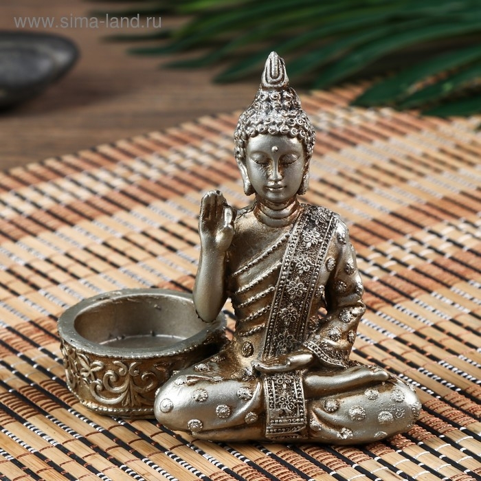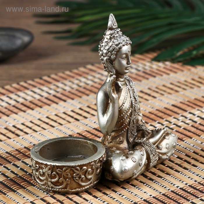 Нэцке полистоун под серебро подсвечник "Будда - медитация" МИКС 10,5х5,3х11 см