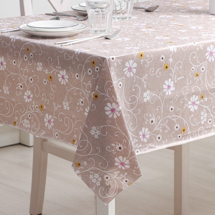 Скатерть на стол на нетканой основе «Ромашки», 137×110 см, цвет коричневый