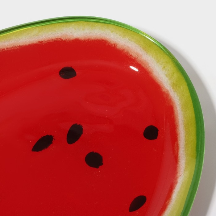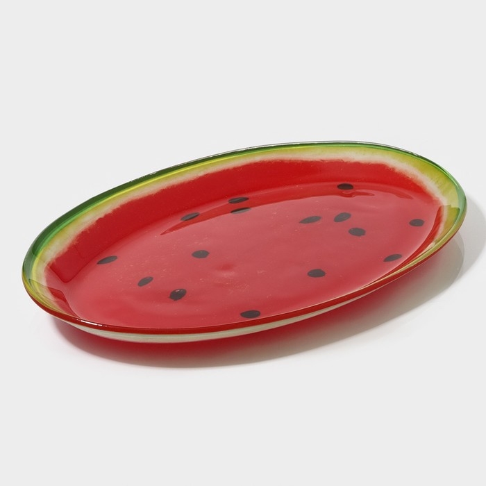 Блюдо сервировочное стеклянное овальное Доляна «Сладкий арбуз», 24,5×15 см, цвет красный
