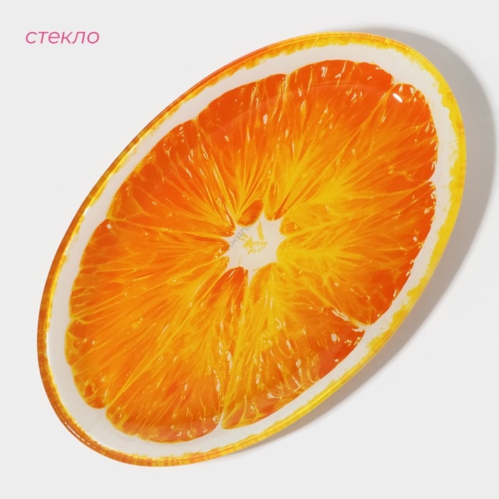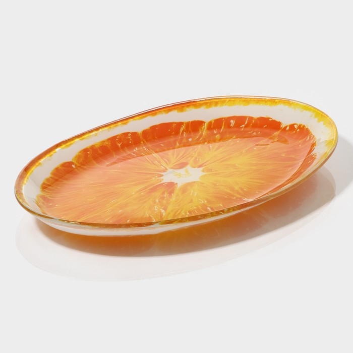 Блюдо сервировочное стеклянное овальное Доляна «Сочный апельсин», 24,5×15 см, цвет оранжевый