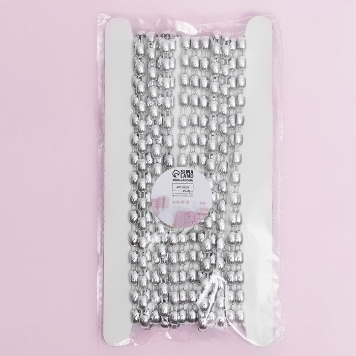 Тесьма металлизированная «Прямоугольник», 8 × 5 мм, 4,5 ± 0,5 м, цвет серебряный