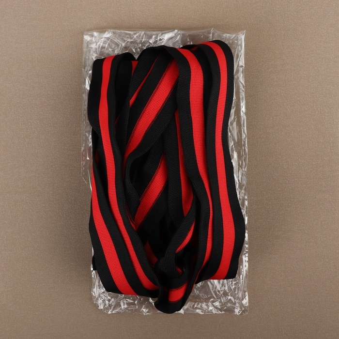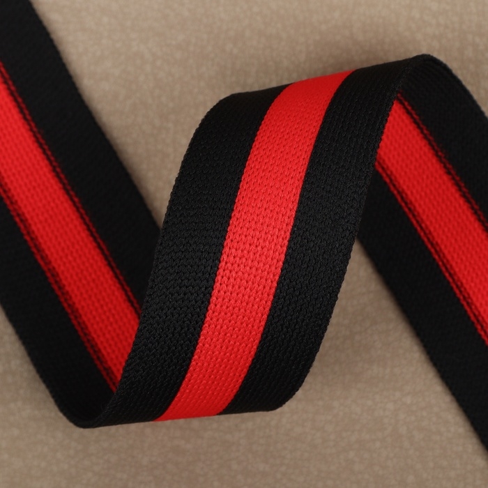 Тесьма трикотажная лампас 30 мм, 9,1 ± 0,5 м, цвет чёрный/красный