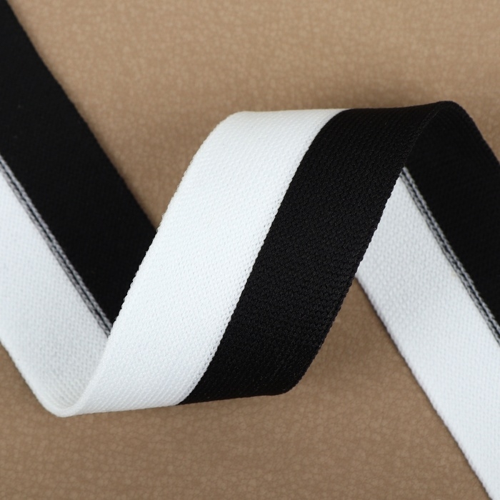 Тесьма трикотажная лампас 40 мм, 9,1 ± 0,5 м, цвет чёрный/белый