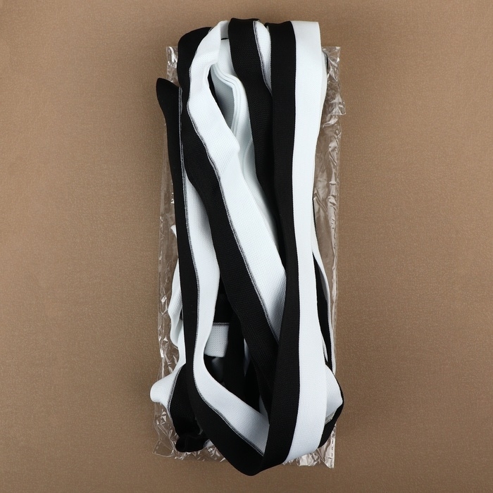 Тесьма трикотажная лампас 15 мм, 9,1 ± 0,5 м, цвет белый/чёрный