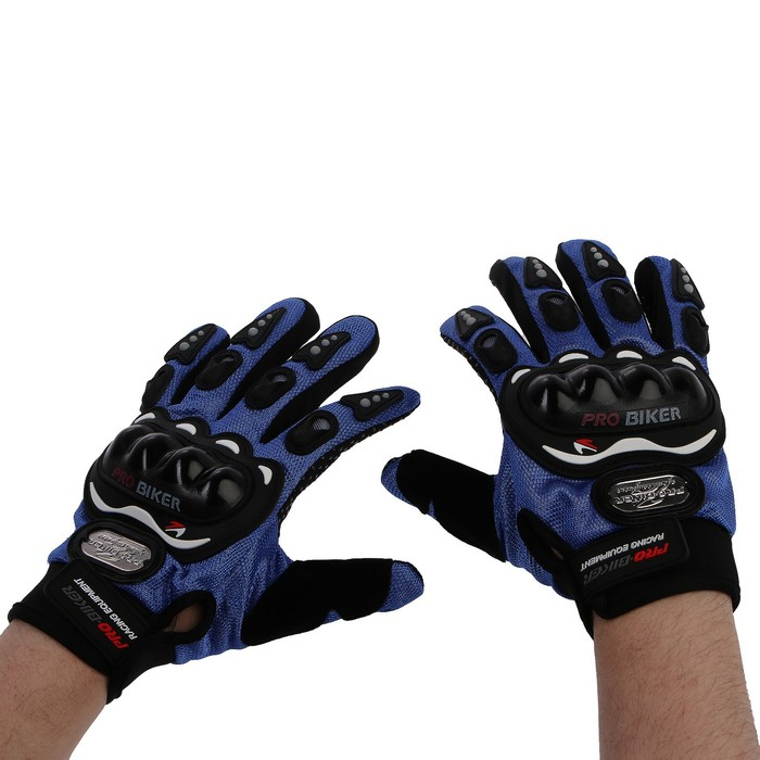 Перчатки мотоциклетные с защитными вставками, пара, размер L, синий