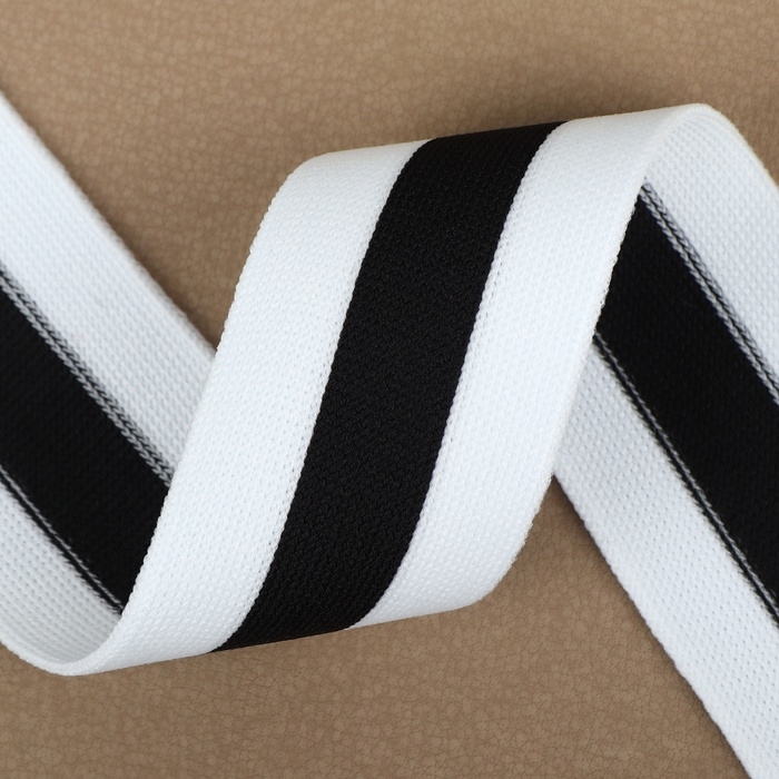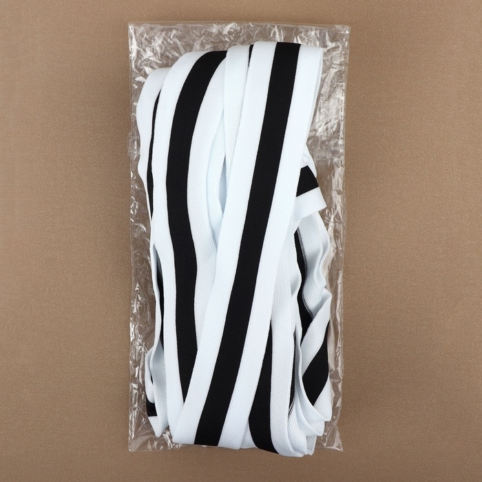 Тесьма трикотажная лампас 40 мм, 9,1 ± 0,5 м, цвет белый/чёрный
