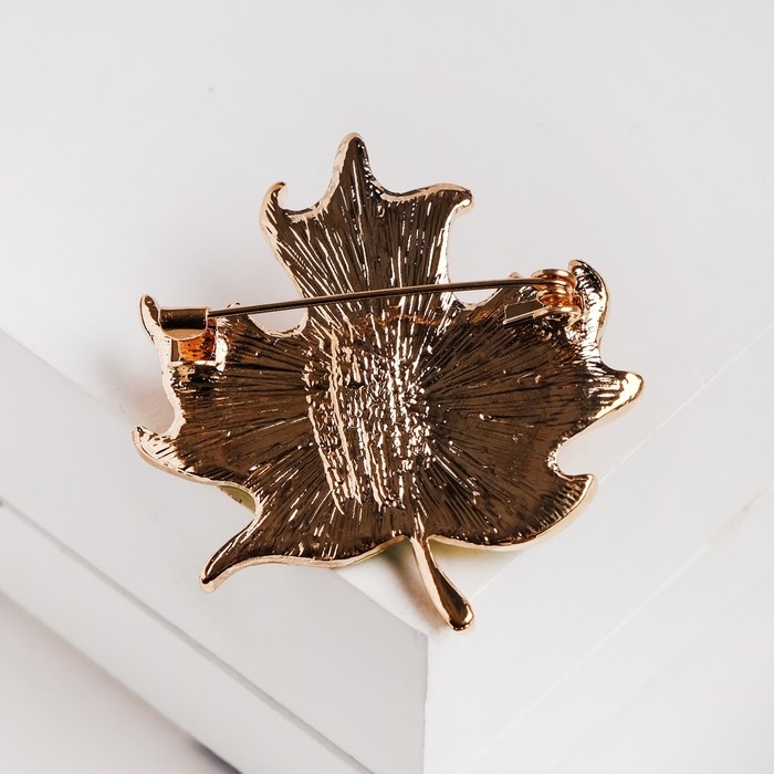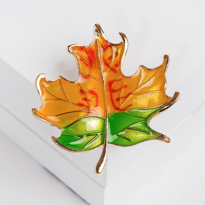 Брошь «Лист» кленовый, цвет оранжево-зелёный в золоте