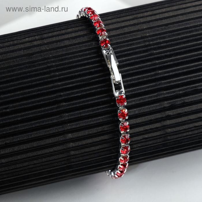 Браслет со стразами «Сияй» тонкая нить, цвет красный в серебре, 18 см