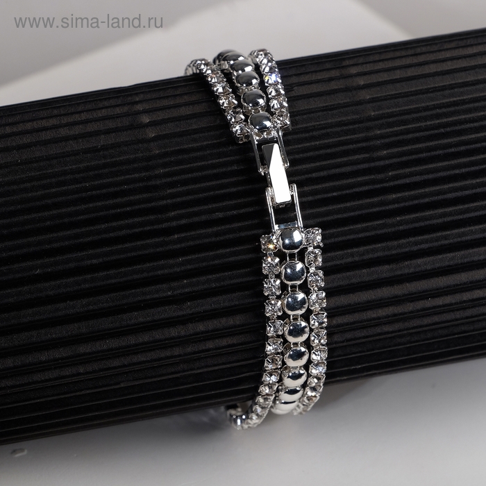 Браслет со стразами «Шайн» 2 ряда, цвет белый в серебре