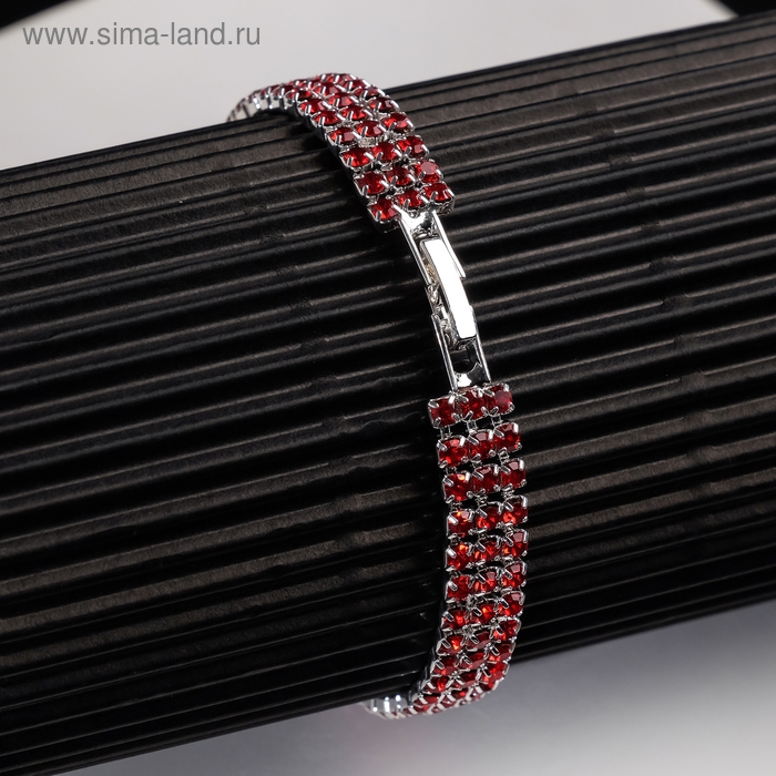 Браслет со стразами «Сияй» три ряда, цвет красный в серебре, 18 см