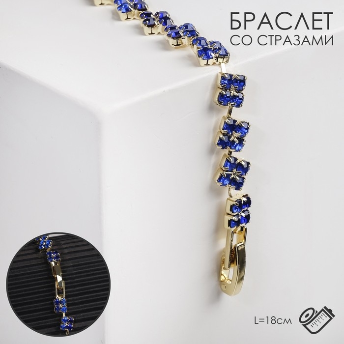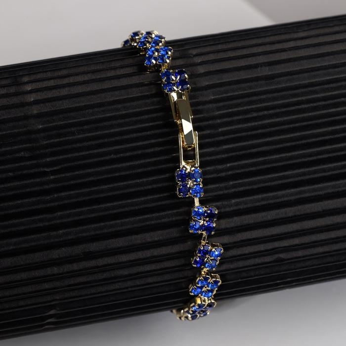 Браслет со стразами «Сияй» ромбики, цвет синий в золоте, 18 см