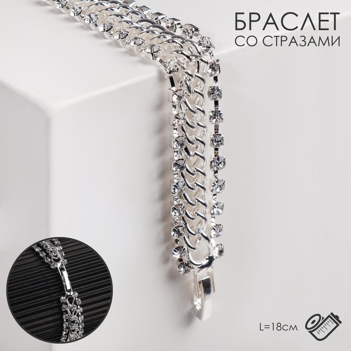 Браслет со стразами «Сияй» цепочка, цвет белый в серебре, L=18 см