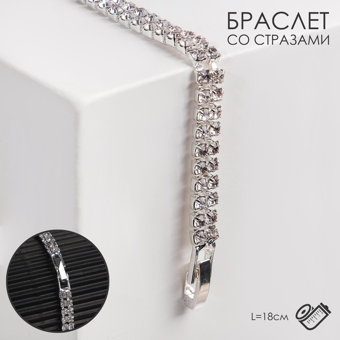 Браслет со стразами «Сияй» 2 ряда, цвет белый в серебре, 18 см