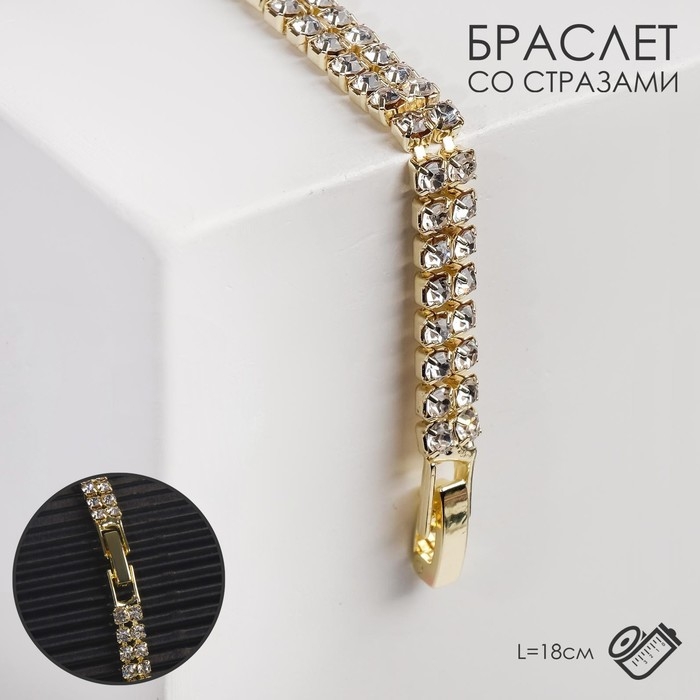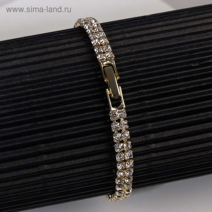 Браслет со стразами "Сияй" 2 ряда, цвет белый в золоте, 18см