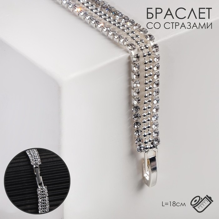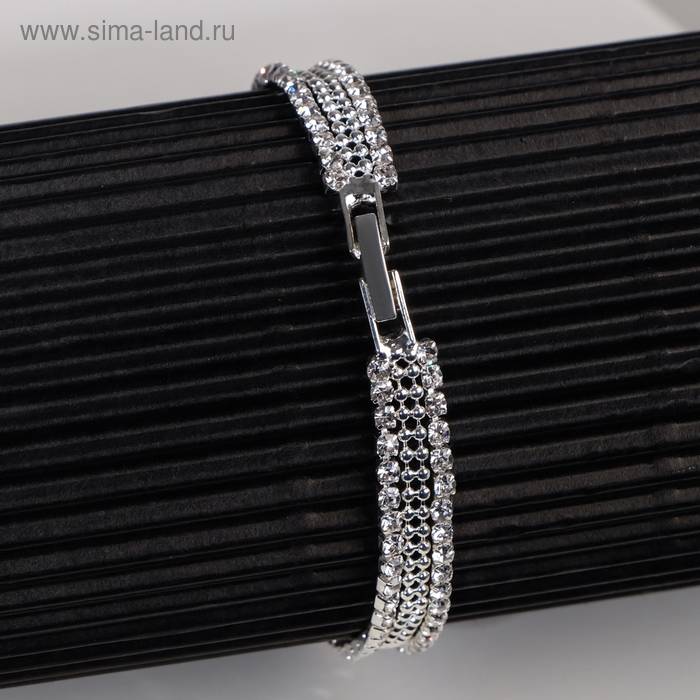 Браслет со стразами «Сияй» 2 ряда, цвет белый в серебре, 18 см