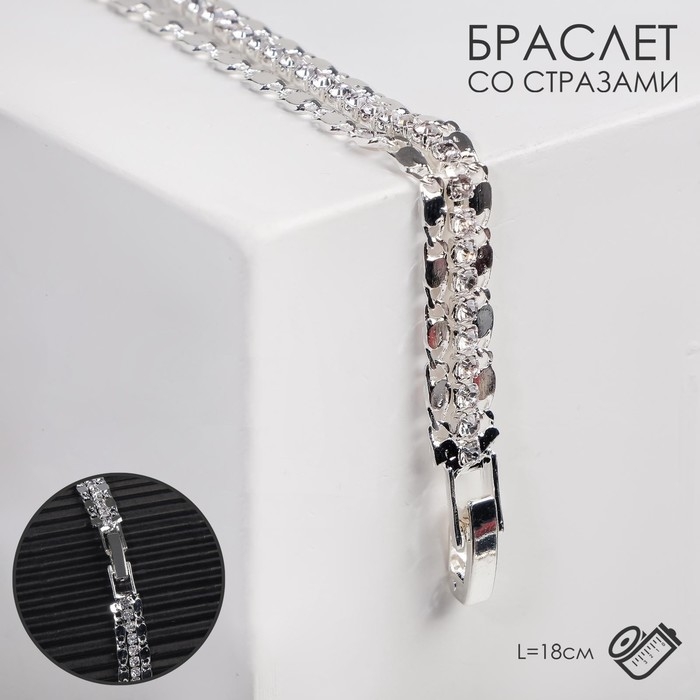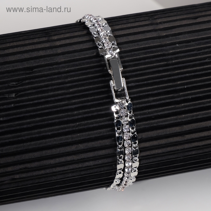 Браслет со стразами «Шайн» 2 ряда, цвет белый в серебре