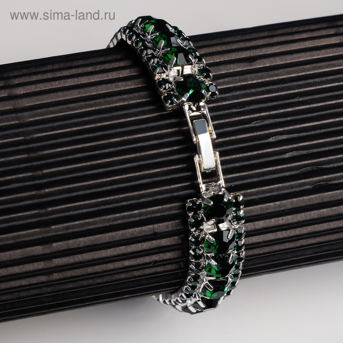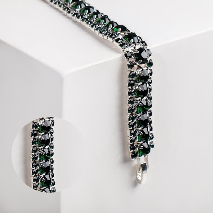 Браслет со стразами «Северное сияние» змейка, цвет изумрудный в серебре, 18 см
