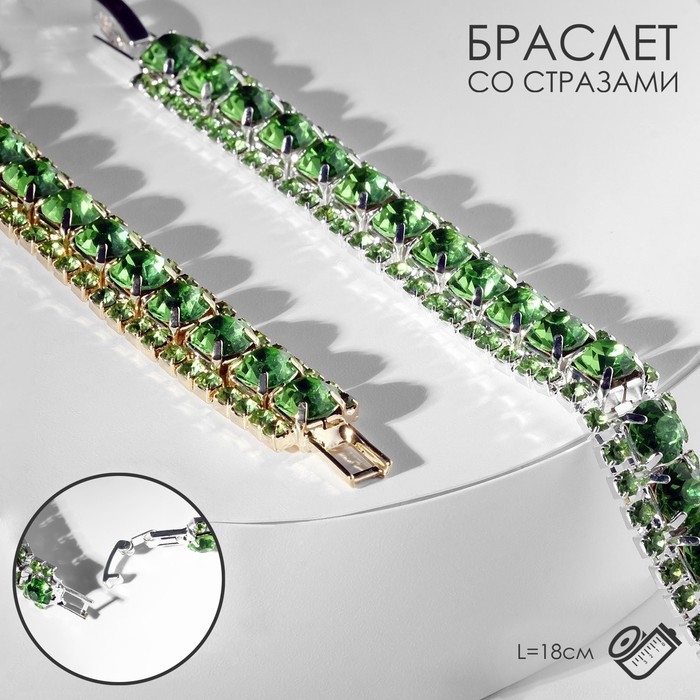 Браслет со стразами «Северное сияние» змейка, цвет светло-зелёный ,цвет МИКС ,L=18см