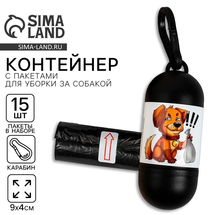 Контейнер с пакетами для уборки за собаками «Пёсик» (рулон 15 шт)
