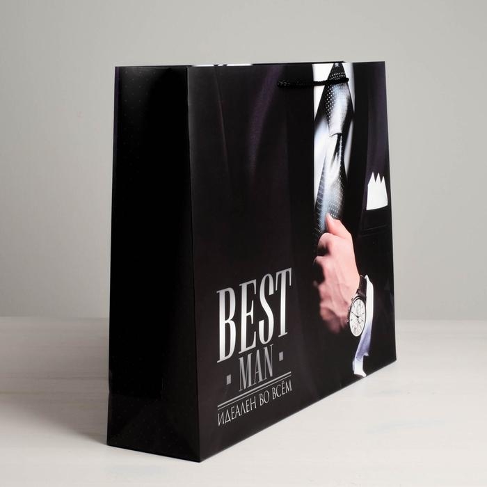 Пакет подарочный ламинированный горизонтальный, упаковка, «Best man», L 40 х 31 х 9 см