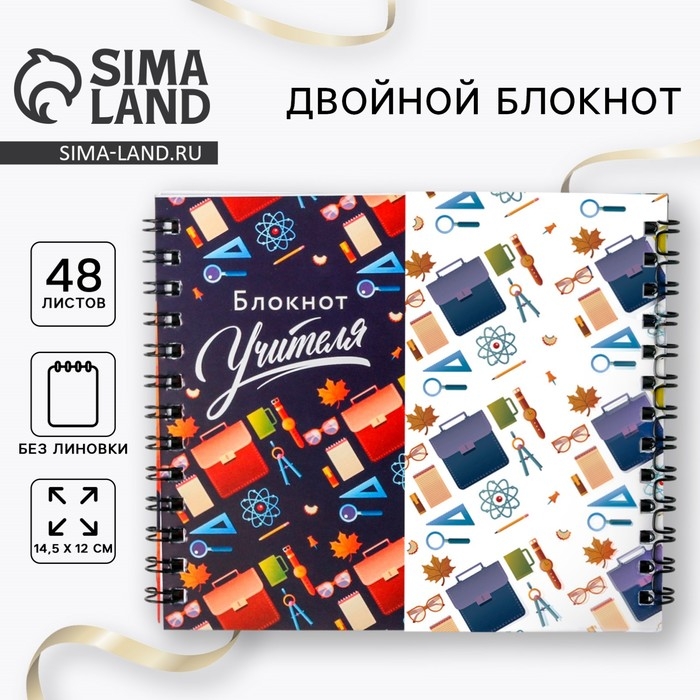 Двойной блокнот «Учителю: С днем учителя» 48 листов, 14,5 х 12см