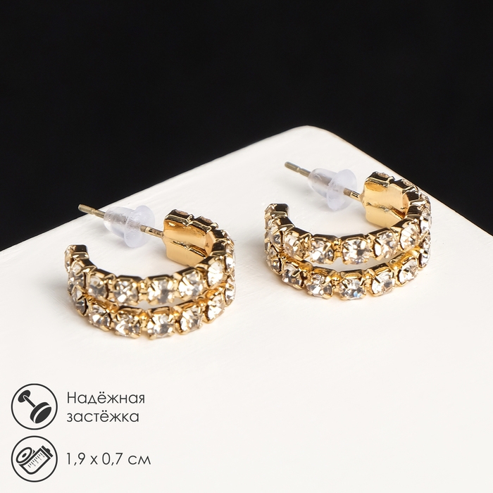 Серьги со стразами «Античность» двойная, цвет белый в золоте