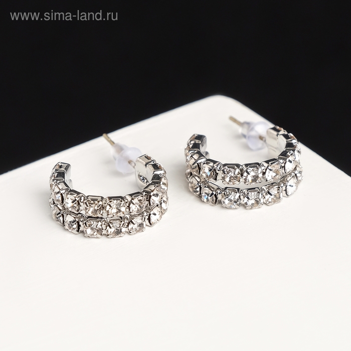Серьги со стразами «Античность» двойная, цвет белый в серебре