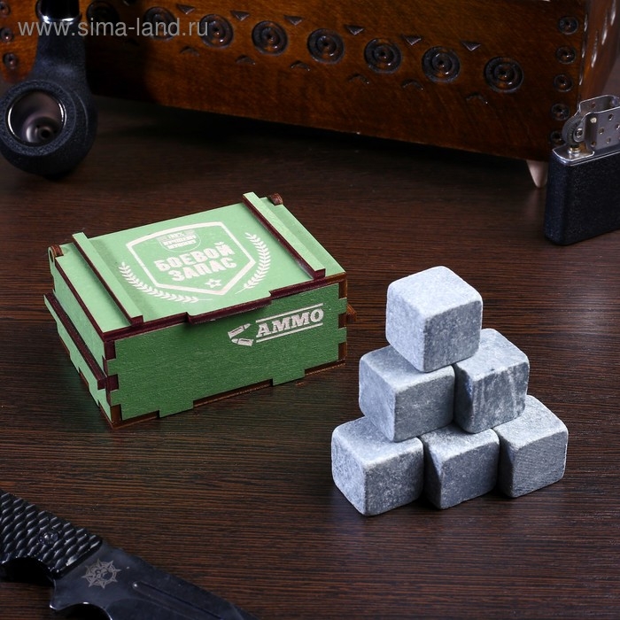 Камни для виски "Боевой запас", в шкатулке, натуральный стеатит, 6шт