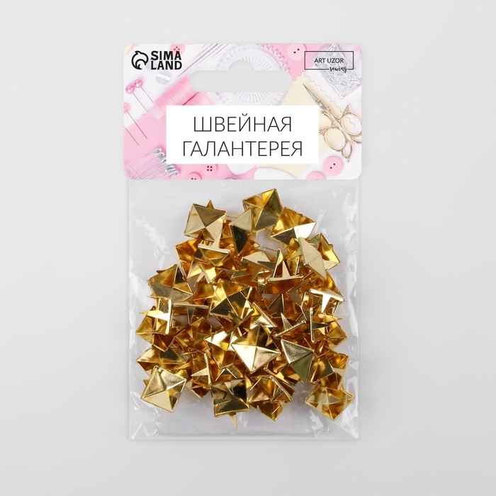 Хольнитен «Пирамида», 11 × 11 мм, 4 крепления, 50 шт, цвет золотой