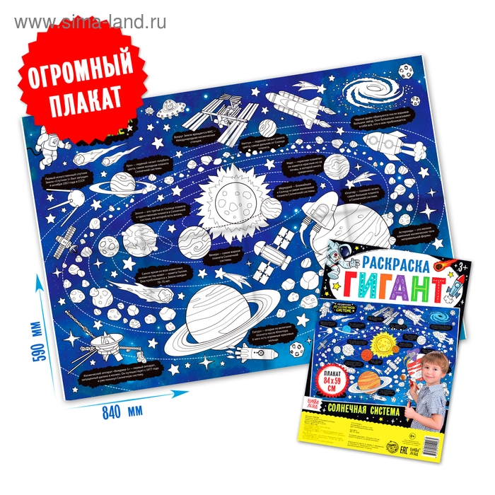 Раскраска гигант «Солнечная система», 59 × 84 см