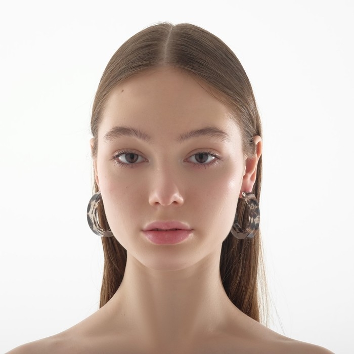 Серьги-кольца «Танзания» леопард, светлый, d=3,5, цветные