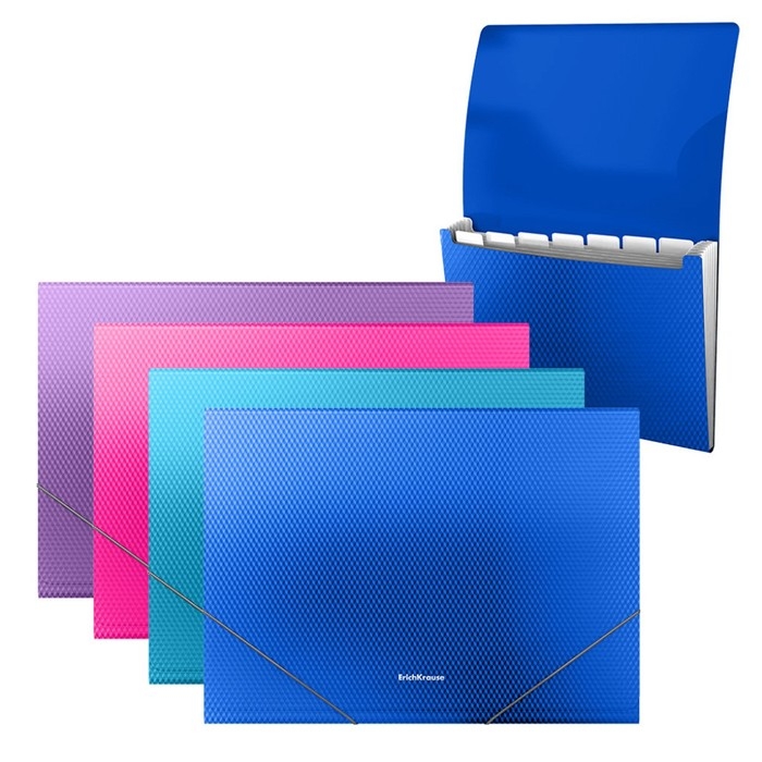 Папка-картотека, А4, 6 отделений, 700 мкм, ErichKrause "Diagonal Vivid", на резинке, тиснение, микс