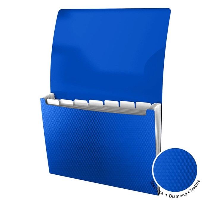 Папка-картотека с 6 отделениями формата А4 из высококачественного пластика с текстурой поверхности "диагональ", на которой не видно отпечатков пальцев и мелких царапин.