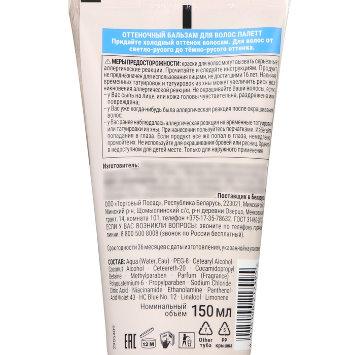 Оттеночный бальзам Палетт Холодный блонд, 150 мл