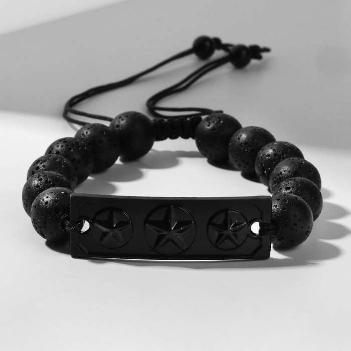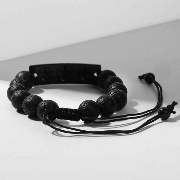 Браслет унисекс «Шамбала» звезды, цвет чёрный с чёрным металлом, шар №10, 16 см