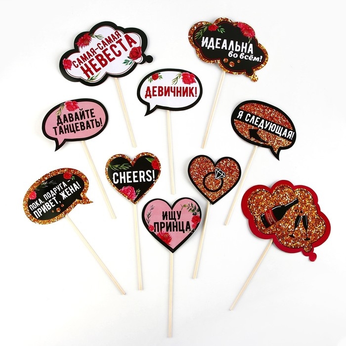 Набор для фотосессии 10 предметов. Аксессуары для фотосессий сделают любую вечеринку незабываемой, ведь ни один праздник не обходится без фото, будь то день рождения, гендерпати, 23 февраля, 8 марта, Новый год, свадьба, девичник или просто праздничная вечеринка. На любом празднике хочется выделяться, а карточки для фотобутофории отлично выполнят эту задачу, сделают вас заметным и неповторимым. Любой ребенок, девочка или мальчик, обязательно захотят сфотографироваться с набором аксессуаров для фотосессии. Данный набор фотобутофории отличный вариант для девичника, замечательно впишется в любую тематику торжества.