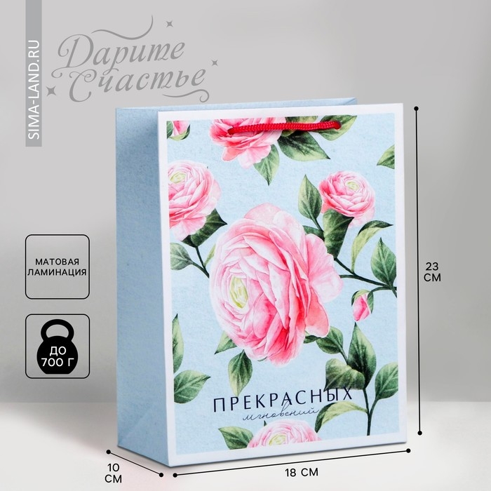 Пакет подарочный ламинированный вертикальный, упаковка, «Прекрасных мгновений», MS 18 х 23 х 10 см