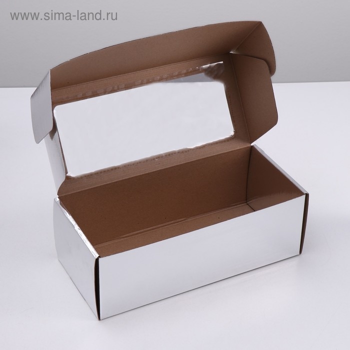 Коробка самосборная, с окном, серебряная, 16 х 35 х 12 см